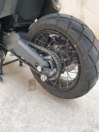 X-ADV 750 Special Edition Red, completo di piastra bauletto + bauletto Givi con schienalino, telaietti per borse morbide a sgancio rapido sempre Givi, come da foto, lucchetto Easyblock, presa usb a manubrio, leve freni + tappi pompe e tappo olio motore in alluminio, appoggio cavalletto laterale maggiorato in alluminio, pedane Off Road e sensori pressione pneumatici con collegamento app cellulare.