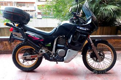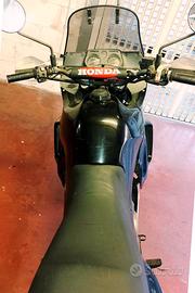 Transalp V 600 first edition, quella con cerchi dorati e ruota anteriore da 21" (la più ricercata dagli appassionati). Non ancora iscritta ASI / FMI ma comunque esente bollo e con assicurazione agevolata (perchè ultra-trentennale). Data l'età si può iscrivere FMI/ASI semplicemente smontando il portapacchi prima di fare le foto. Revisionata e tagliandata recentemente. Oltre al tagliando completo è stato sostituito anche il disco della frizione (oltre 500? di spesa). Nelle foto monta sella originale ma è disponibile, IN ALTERNATIVA, anche una sella ribassata (vedi ultima foto). Batteria maggiorata da 12v. e ben 200cca di spunto. Monta come accessorio telaio portaborse laterali e portabauletto in alluminio della GIVI per aggancio rapido di borse attacco GIVI o simili . Il contakilometri segna 119.000km ma il motore attualmente montato ne ha fatti solo 39.000 perchè è il secondo. Il primo si è rotto nel 2014 (a 80.000km) ed è stato sostituito con uno praticamente nuovo. Perfettamente funzionante, non ha bisogno di nessun intervento. Esamino permuta con scooter euro3 Burgman 650, Piaggio MP3 o Honda SilverWing. Visibile a Roma zona EUR.