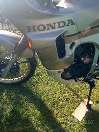 Buonasera, vendo la mitica transalp 600 prima serie,la piu' leggera di tutte, nell'introvabile color bronzo, perfettamente funzionante, tagliandata,gomme praticamente nuove,liquidi freno,radiatore e olio forcelle sostituiti, batteria sostituita in agosto, la moto è assicurata e utilizzata nel tempo libero, vissuta chiaramente vista l'eta', ma non troppo, a parte la fiancata sx come si vede nella foto e i soffietti delle forcelle.
