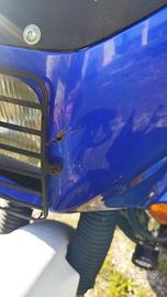 DIFETTI: strisci carena laterale al faro (vedi foto). Se uno volesse utilizzare un bauletto centrale, la piastra andrebbe sostituita (vedi foto) per il peso si è rotto durante un giro in offroad.