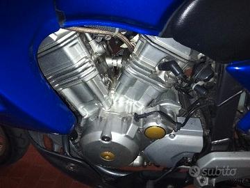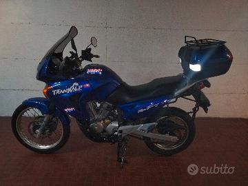 Honda XL 650 V Transalp - 2001 Completa di tantissimi accessori presa accendisigari, attacco cellulare, presa usb, fari supplementari telai portaborse bauletto originale in tinta, marmitta più collettori marving, 2 db killer, fasciatura tubi scarico con tessuto paracalore risolto il problema di tutte le transalp del calore eccesso alle caviglie. Filtro aria K&N per sempre (eterno) non si cambia, cavalletto centrale, 4 frecce di emergenza, potenziamento di 10cv, ammortizzatore post maggiorato nuovo, kit forcella anteriore modificata per assetto stradale e non se uno volesse c'è tutti i ricambi originali con le molle interne, parabrezza alto fumè nuovo, valigie laterali rigide marca givi come nuove, bauletto originale Honda con portapacchi superiore, tutti gli accessori più la moto sono corredati di doppie chiavi, kit attrezzi orig Honda sotto sella con bomboletta antiforatura. Ammortizzatore posteriore nuovo revisione appena fatta. Bollo pagato fino a settembre 2026. Prezzo non trattabile