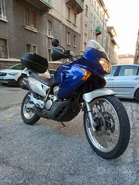 Vendo Honda Transalp 650 immatricolata nel 2005, di colore blu, con circa 73.000 km. La moto è sempre stata custodita in garage, al coperto, ed è in ottime condizioni generali. Sono presenti alcuni normali segni di usura dovuti al tempo, ma il motore è assolutamente affidabile e perfettamente funzionante.