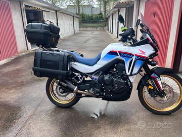 Vendo Honda XL 750 2024 immatricolata 2025 3800km garanzia Honda 6 anni Full optional. Cavalletto centrale,faretti fendinebbia,cablaggio Apple CarPlay più carplay,piastra paramotore più paracarene,portapacchi givi. Scarico arrow più scarico originale. Vendo/Scambio con tracer 900gt più conguaglio a favore Moto pari al nuovo tenuta maniacalmente.