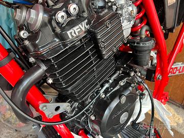 Su richiesta, posso fornire documentazione fotografica del restauro e degli interventi effettuati. Il restauro ha incluso motore, carburatori, forcelle, parti plastiche, pneumatici, verniciatura, sella e molto altro.