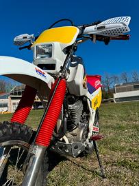 Propongo in vendita bellissima Honda XR 600 R del 1996 La moto si presenta in perfette condizioni, ben conservata e completamente revisionata. - testata retificata - distribuzione e valvole rettificate - carburatore revisionato - scarico Arrow con collettori lucudati - trasmissione - pneumatici ok - paramotore in alluminio - manubrio diametro 28 - display digitale - ammortizzatori revisionati - pastiglie freni ant e post nuove - sella nuova Insieme alla moto verranno ceduti molti pezzi originali - silenziatore - plastiche - molto altro
