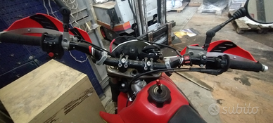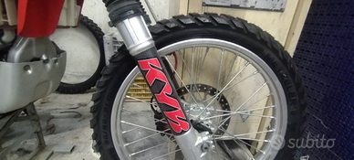 Moto con doppia omologazione sia motard sia enduro e relativi cerchi/pneumatici riportati a libretto. X enduro 90/90-21 e 140/80-18 oltre che a misure in pollici. Ho solo cerchi da enduro, con canali did e mozzi originali ma raggiatura rinforzata montata da Fa.Ba., doppi cuscinetti cerchio posteriore, disco anteriore con maggiorazione a 270 e pneumatico anteriore Metzeler Karoo3 nuovo come da foto. Revisione valida fino a settembre 2027, bollo pagato. Monta collettori separati CRD, ma ho anche gli originali. Pedane maggiorate. Le forcelle da enduro in foto NON sono in vendita, ma ne ho un altro paio sue originali che montavano coi cerchi da 17 motard. Vendo x cambio moto. Poco trattabile e prego solo seriamente interessati grazie