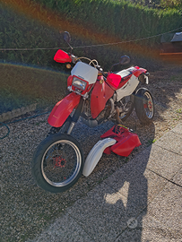 Vendo Honda xr 650 r dall'ara in perfette condizioni del 2002 km 19000 con doppia omologazione a libretto enduro/motard oltre la versione originale c'è il serbatoio acerbis maggiorato 24l, collettori con sezione maggiorata + originale, cerchi motard clf con raggi da 4 mm, parafango motard insomma il necessario x le due versioni. Non vendo separatamente.