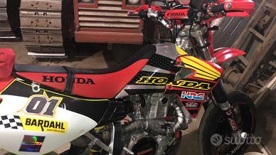 Vendo Honda xr 650 r Dallara completamente revisionata. Moto da collezione. Serbatoio montebelli, carburatore keihin fcr 41mx , filtro aperto bmc, mascherina America, scarico completo Leovince, rapporti allungati con corona più grande. Modifiche circa 4000 euro.PERFETTA. Motore revisionato completamente da TNT. Moto veramente ottima. Vendo per inutilizzo