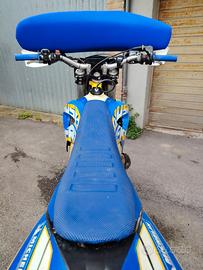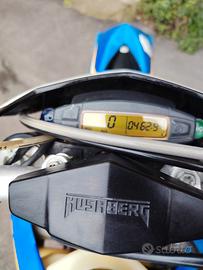 Motore 2T Ktm mod.2012 Moto perfettamente funzionante con revisione valida Feb 2028. Para radiatori in metallo ,para disco post,pedane maggiorate, protezione steli forcelle,porta targa estraibile,Kit Ventola,mousse posteriore,serbatoio 11 LT. Seconda sella (ribassata) mai utilizzata, visibile in foto. Qualsiasi prova.