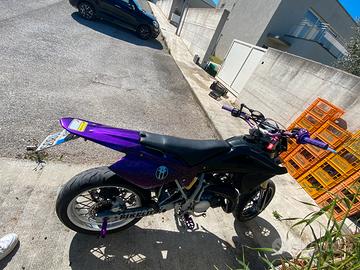 vendo husquarna sm 125 del 2007 la moto monta terminale DRP in carbonio e carburatore 28 vhst la moto ha circa 2200km. La moto é stata pellicolata viola ma é possibile levarla e farla diventare completamente nera cedo tutti i pezzi originali come gas rapido manubrio pedane e leve in alluminio viola antirottura per altre informazioni scrivetemi. Il prezzo é trattabile