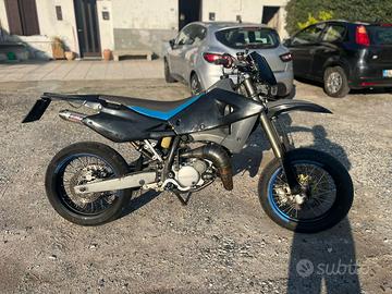 Vendo Husquvarna sm 125 del 2005 come da foto, moto con motore appena rifatto (ancora in rodaggio) meno di 1h di utilizzo con tutte le fatture disponibile, oltre al motore rifatto è stato rivisto il carter (lavorata l'aspirazione e sabbiata). Dispongo anche di altri pezzi, come: Espanzione Husquvarna, altri sileziatore, batteria, cavi frizione ecc. La moto attualmente è senza revisione.