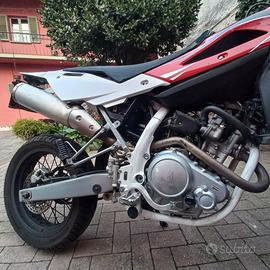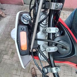 vendiamo moto in ottime condizioni, tenuta con amore. All'attivo ha 34500 Km ma a 23000 è stata eseguita la sostituzione del cilindro, pistoni (completo), guarnizioni smeriglio, lucidature valvole, registrazione gioco. Nel 2024 è stata sostituita la batteria e il motorino di avviamento. Presenta cerchi originali da 17", canale 110 all'interiore e 140 al posteriore. Le gomme sono in ottime condizioni. Forcella Paioli da 41 mm. con steli anodizzati neri, pinze e pompe Brendo con dischi originali ( 260-220). Esteticamente monta : v-face, fianchetti del 450, porta targa pieghevole, frecce led micro fumè, faro posteriore led fumè, paramani circuit fenix, manubrio anodizzato nero, coprisella.