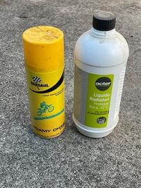 Vendo tutto assieme alza cavalletto acqua per radiatore e olio per catena, porta telefono.