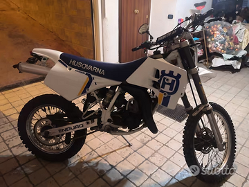 Vendo Husqvarna 125 2T targato ASI - 1990: Moto completamente originale, possibile portarla con patente A1 dei 16 anni, monta una batteria da 12AH, clacson frecce e luci led funzionanti. Iscritta ASI, io in provincia di Napoli pago circa 200 annui. Accensione a pedivella, omologata per 2. Moto come nuova, 6 rapporti corti, sempre usato olio motul 710 il pistone ha 10H, monta candela in punta di platino, fatta ricarburare da poco. Regalo assieme anche marmittino originale cagiva, volendo si può fare un uso pista senza problemi. Assieme alla moto cedo anche le gomme tacchettate continental nuove! ora monta delle michelin stradali. Moto sempre perfetta mai problemi di motore o altro, sempre utilizzata per strada. MAI USO PISTA. Per info contattate.