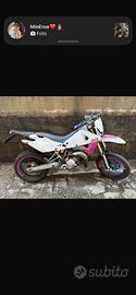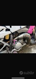 Presenta uno scarico e pancia Gianelli, una mascherina E blaze e oltre a queste regalo scarico e pancia originali Husqvarna, mascherina originale Husqvarna, e una da pista.