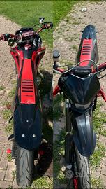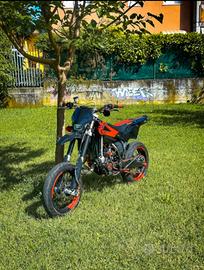 HUSQVARNA SM 125 FULL ELABORATA PRONTA ALL USO Vendo Husqvarna SM 125 completamente preparata curata nei minimi dettagli moto unica per prestazioni ed estetica Motore completamente elaborato cilindro 7 travasi lavorato pistone monofascia testa e basetta alta compressione biella rinforzata albero motore rinforzato valvola scarico modificata collettore in alluminio con guida flussi carburatore Mikuni 38 maggiorato appena carburata scarico completo FMF Ciclistica e componenti pompa freno anteriore Yamaha R6 tubi radiatore rossi trasmissione nuova gomme Pirelli nuove manubrio in ergal leve aftermarket pedane e leva cambio in ergal Estetica plastiche nuove cerchi bicolor sella WD Racing paracolpi e tamponi copri airbox forgiato dettagli in carbonio strumentazione digitale Koso portatarga vmracing Revisione valida fino al 2027 moto pronta all uso nessun lavoro da fare sempre seguita Scrivimi per info o per vederla no perditempo