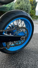 la moto è stato riverniciata completamente da un carrozziere quindi un lavoro fatto bene, gomme Mitas nuove, motore stato aperto per revisione completa, monta scarico completo FMF (costo sui 500?) e carburatore 32, volendo posso cedere il mikuni 38, monta anche un set di carene nuove e sella ritapezzata a cui posso aggiungere un set di sella e serbatoio per fare aggiornamento post 06 di cui la moto è già predisposta. In foto non presenta fari e frecce per gusto personale, ma cedo le 4 frecce da montare, la barra a led per la mascherina piatta e il faro V-face. Per maggiori informazioni contattatemi pure ma solo se veramente interessati. Prezzo POCO trattabile visto che sono compresi anche carburatore 38 mikuni e kit sella e serbatoio