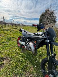 Vendo HUSQVARNA SM 125 MOTARD come da titolo, la moto è stata restaurata, tagliandata regolarmente e tenuta molto bene. Monta come accessori aggiuntivi: - Scarico completo HGS - testa con cupola troncoconica + basetta htm - carburatore 38 mikuni - contralbero rimosso - frizione completa nuova - pompa dell’acqua nuova - cuscinetti nuovi - pistone vertex monofascia con grafite - V-FORCE 4R - La moto attualmente monta rapporti corti - catena nuova - cuscinetti ruote e sterzo nuovi - tubi diretti di raffreddamento in silicone rosso - specchietti sotto al manubrio - accensione racing ad anticipo variabile con due mappe al manubrio - recupero fluidi soat 3d - tamponi soat 3d - Disco freno posteriore maggiorato e nuovo - cambio olio freni e spurgo appena fatto - kit plastiche nero - manubrio in ergal rosso - pedane rl racing in ergal rosso - pedale leva del cambio in ergal rosso - gomma anteriore 70% - gomma posteriore praticamente nuova - impianto elettrico semplificato energy sistem - frecce microled - porta targa pieghevole Dea Craft - sella rifoderata - v-face o piatta (cedo entrambe) Insieme alla moto cedo alcuni kit di plastiche e lo scarico originale. Il prezzo è leggermente trattabile dopo la visione, sono ovviamente disponibile per far anche provare la moto, per maggiori informazioni/ video contattatemi pure!