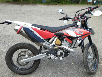 Salve,come da titolo vendo Husqvarna 450 TE del 2012 per passaggio a moto turistica, la moto è originale con terminale akrapovich omologato, insieme cedo anche scarico originale.