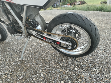 Vendo per cambio progetto husqvarna 510 smr del 2005, moto in ottime condizioni, a carburatore, motore ok, accensione elettrica, catena corona e pignone e gomma posteriore cambiate a primavera 2025, forcella anteriore cambiato olio e paraolio a luglio 2024, gomma anteriore al 50%,monta frizione antisaltellamento e faro led.