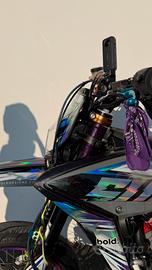 Vendo per cambio tipologia, moto super sopravalutata essendo del 2011 ma d’estetica sembra nuova. - grafiche bold 400€ - adesivi bicolor holo 100€ - parafango anteriore hsq 701 200€ -faro angel eye exagonal della Locci’s eye rgb 300€ -scarico completo akrapovic più di 2000€ Prezzo leggermente trattabile dopo visione.