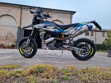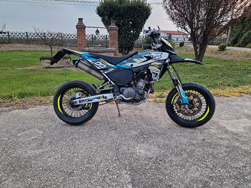 Vendo per inutilizzo moto Husqvarna motard versione depotenziata, adatta per A2. Monta scarico Higashi omologato, faro anteriore xenon, posteriore Racetech con targa a sgancio rapido, cerchi verniciati di nero a polvere, grafiche personalizzate. Circa 2000 km fa sono stati cambiati trasmissione, pastiglie, olio freni ed é stata revisionata la forcella. Gomma anteriore seminuova, posteriore a circa metá vita A ottobre é stato fatto un tagliando completo ed un controllo generale, bollo '26 pagato. In dotazione paracalore scarico, mascherina e parafango anteriore con grafica abbinata. Scrivere solo se interessati.