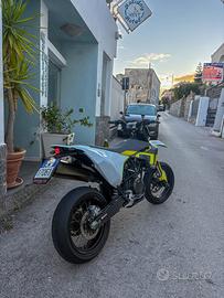Vendo bellissima Husqvarna 701 per cambio tipologia, le foto parlano da sole, la moto non ha nessun tipo di lavoro da eseguire, é stata appena cambiata la trasmissione completa e montata pinza brembo 16x18 con tubi in treccia anteriori e posteriori. Vendo per cambio tipologia, la moto monta terminale akrapovic e svariate componentistiche in carbonio, logicamente fornisco anche le oroginali. Tagliandata sempre nei tempi giusti e trattata con guanti bianchi!