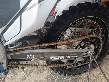 La moto viene venduta con treno di gomme nuove Pirelli Scorpions mx 32 forcelle e mono appena revisionate con circa 4 ore pedane maggiorate in titanio para telaio e paradischi freno anteriore acerbis leve originali la moto ha 140 ore con pistone e biella cambiate a 110 ore non necessità realmente di nulla ed è visionabile presso il mio meccanico di fiducia perché io sono impossibilitato a muovermi causa infortunio. per qualsiasi altra info non esitate a chiedere