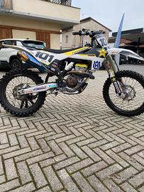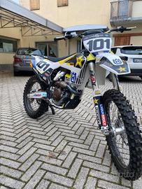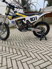splendida Husqvarna 350 FC 4t con appena 22 h scarico in Titanio, sospensioni racing varie protezioni in carbonio, da vetrina.