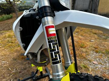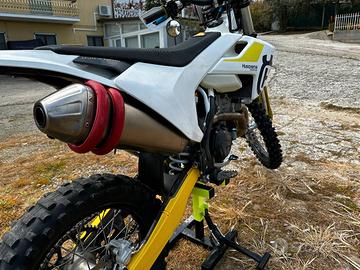 Vendo Husqvarna FE 250 4 tempi enduro no cross tenuto maniacalmente per inutilizzo a motivo di poco tempo. Mai pista. Super accessotiata con Protezioni di ogni tipo in Giallo, paramotore lungo per una massima protezione, Para forcelle, Ammortizzatori elaborati ULISSI, Trasmissioni appena sostituite, Corona catena pignone, Olio e filtro sempre dopo 10 ore di utilizzo con olio Bardall, dopo visione POSSO REGALARE ALCUNI ACCESSORI NON ELENCATI ( tipo scarico originale, serbatoio sportivo più leggero, kit grsfiche, Kit Plastiche ecc) scarico Akrapovic,