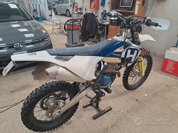 Husqvarna fe 350 modello 2017 immatricolato nel 2016 . Pistone e distribuzione fatti da 100 ore . Sospensioni revisionate da Power Moto . trasmissione e batteria nuova . Mousse michelin montate da un mese . Doppie plastiche .doppia sella una originale e una ribassata - 2 cm . La moto è in ordine di tutto . Vendo per passaggio a 2 tempi .