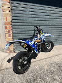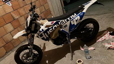 Vendo Husqvarna Fe 350 fatto motard, modello 2017 con all attivo 260h totali, poco fa modificato I impianto frenante anteriore con pinza brembo, Vendo perché è inutilizzato e ho bisogno d una moto diversa. Messa eccellentemente per quanto riguarda il motore la ciclistica e l estetica, solo su quest ultimo punto ha un difetto che è una striscia sul cerchio anteriore dove è venuta via la vernice