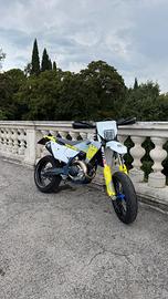 La moto omologata immatricolata e omologata motard, la moto é completamente originale monta solamente i copri carter in carbonio della Cmt, cerchi della SM PRO lucidi, porta targa pieghevole di VM racing e kit plastiche nere