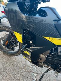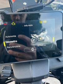 i raschi sulla carena di sinistra e sul terminale non sono attribuibili ad una caduta, ma all'uso in fuoristrada dove poggiare la moto e qualche scivolata vanno messi in conto