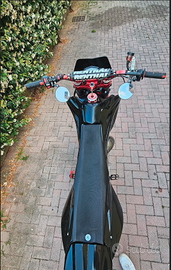 husqvarna sm 125 2009 Biella, cuscinetti, paraoli e pistone sostituiti da 50 ore cilindro 5 travasi alesato 144 htm + testa nera vforce 3 mikuni tmx 38 con polmone maggiorato + getti minimo e massimo accensione pvl 13 impianto elettrico indipendente e scollegato dal motore (ha una batteria a parte) luci frecce e idrostop funzionanti espansione artigianale reparto corse con leggera bozza terminale bud forcelle marzocchi 50 appena revisionate neanche da 2 ore piastre kite offset 18mm spostapinza e flangia vm racing per montare pinza brembo stylema 100mm, pastiglie in ottimo stato pompa brembo 16×18 tubo in treccia accossato disco motomaster da 320mm sostituito ruota anteriore con una di derivazione husqvarna 450/510 con perno 25 e lama più larga manubrio da 28mm renthal rosso anodizzato con anche risers mono ohlins kit catena pignone corona DID rapporti 14-46 kit plastiche nere con parafango anteriore yz 85, fianchetti bombati rr, parafango posteriore cr specchietti bassi leva cambio rtech tachimetro koso DB-02R digitale con contachilometri, contagiri, doppio sensore temperatura portatarga pieghevole sella rifoderata da poco scarico e altri pezzi originali