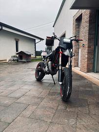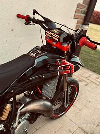 vendo husqvarna sm 144 la moto monta: cilindro htm racing 144cc 5 travasi testa scomponibile ricavata dal pieno color oro biella al cnc pistone wossner carburatore pwk 38 tubi siliconici racing as3 performance espansione messico e sile artigianale impianto frenante completamente brembo forcelle marzocchi e mono di un hsq 510 accensione kokusan impianto elettrico semplificato gtlab completamente funzionante vendo moto per inutilizzo e passaggio a macchina, il motore é stato rifatto dopo aver subito un danno per usura, e ora all’ativo sono stati percorsi 100km (praticamente qausi a fine rodaggio é) inoltre alla moto sono state rifatte verniciature a polvere del telaio e del mono , revisione generale al motore dopo la rottura e apputo impianto elettrico nuovo, sono presenti segni di usura legati agli anni, ma nulla di che. La moto viene venduta con formula vista e piaciuta. prezzo leggermente trattabile per maggiori info chiede pure