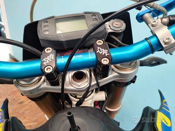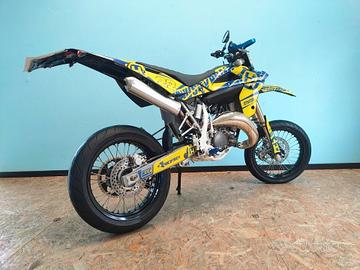 NOTE: Spettacolare motard 125 2T in configurazione Racing. Motore completamente revisionato, Kit trasmissione nuovo, Olio e paraoli forcelle nuovi, Olio freni e pastiglie anteriori e posteriori nuovi, Carburatore Keihin PWK 36 mm (disponibile originale), Valvola lamellare V-Force 4, Accensione anticipata PVL, Leva frizione NR Team, Scarico completo DEP (disponibile originale). Paramani Alba Motor Parts, Pedane allargate, Plastiche nere nuove, Grafiche Evolution MX Graphics, Sella racing. Completamente finanziabile, anche senza anticipo, con soluzioni flessibili e personalizzate. Servizio di consegna a domicilio con trasportatori specializzati (costo da conteggiare a parte a seconda della distanza).