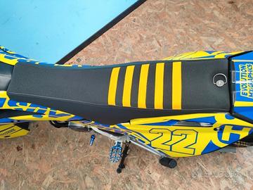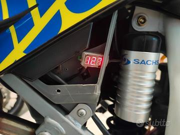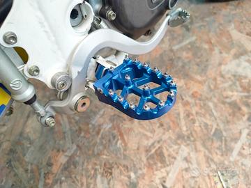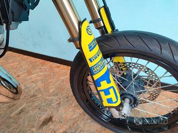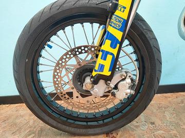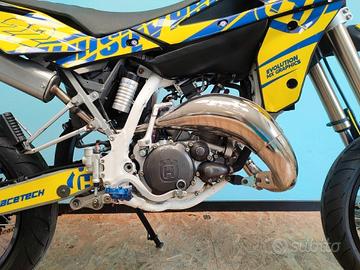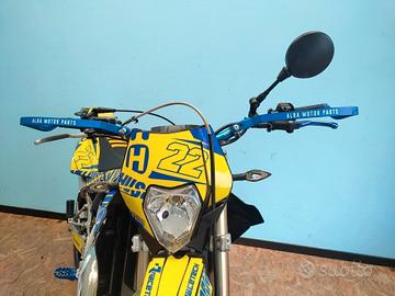 NOTE: Spettacolare motard 125 2T in configurazione Racing. Motore completamente revisionato, Kit trasmissione nuovo, Olio e paraoli forcelle nuovi, Olio freni e pastiglie anteriori e posteriori nuovi, Carburatore Keihin PWK 36 mm (disponibile originale), Valvola lamellare V-Force 4, Accensione anticipata PVL, Leva frizione NR Team, Scarico completo DEP (disponibile originale). Paramani Alba Motor Parts, Pedane allargate, Plastiche nere nuove, Grafiche Evolution MX Graphics, Sella racing. Completamente finanziabile, anche senza anticipo, con soluzioni flessibili e personalizzate. Servizio di consegna a domicilio con trasportatori specializzati (costo da conteggiare a parte a seconda della distanza).