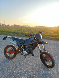 Vendo Husqvarna SM 125 2t del 2005 per passaggio a cilindrata superiore, la moto ha circa 3500km, è stata utilizzata prevalentemente il weekend e sempre tenuta in garage al chiuso. Il motore è stato rifatto completamente dal precedente proprietario che ha lucidato il cilindro e sostituito: pistone, biella, cuscinetti, paraoli e guarnizioni varie. Inoltre era stata sostituita completamente anche la trasmissione con catena, pignone e corona nuovi (rapporti 13-48).