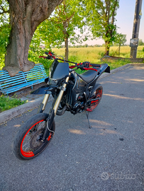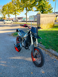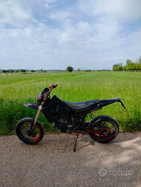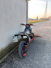Vendo Husqvarna SM 125 2t del 2005 per passaggio a cilindrata superiore, la moto ha circa 3500km, è stata utilizzata prevalentemente il weekend e sempre tenuta in garage al chiuso. Il motore è stato rifatto completamente dal precedente proprietario che ha lucidato il cilindro e sostituito: pistone, biella, cuscinetti, paraoli e guarnizioni varie. Inoltre era stata sostituita completamente anche la trasmissione con catena, pignone e corona nuovi (rapporti 13-48).