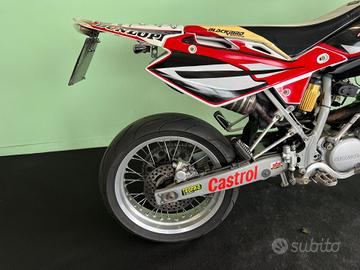 HUSQVARNA SM 125 IN BUONE CONDIZIONI, 2 PRECEDENTI PROPRIETARI, SEMPRE REGOLARMENTE TAGLIANDATA. KM ESATTI NON DISPONPONIBILI, CIRCA 15000. GOMME AL 50%, PASTIGLIE FRENO ANTERIORI E POSERIORI NUOVE, SELLA RIFODERATA, ADESEVI SOSTITUITI RECENTEMENTE.