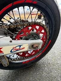 Vendo Husqvarna sm 125 2t del 2011 come da titolo col motore rifatto con zero km, cilindro nuovo con testa htm, carburatore pwk 34, pistone e biella wossner, cuscinetti di banco c4 nuovi, scarico completo scalvini, (solo la pancia é da lucidare) accensione regolabile con doppia mappatura, impianto frenante maggiorato con disco 320 e spostapinza in ergal, abbinato a pompa adelin (frena tanto) gomme nuove, kit trasmissione con corona in ergal nuove, moto molto divertente, vendo per inutilizzo! NO perditempo…