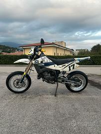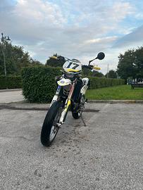 Causa poco utilizzo vendo Moto Husqvarna SM 125 2t, allestimento motard, blocco motore completamente rifatto 600km fa, gomme metà consumo, pignone e corona sostituiti (corona da 42 denti), pancia e terminale sostituiti entrambi con HGS, freni perfettamente funzionanti, carene sostitute con quelle visibili in foto, bollo pagato per tutto l'anno in corso.