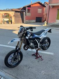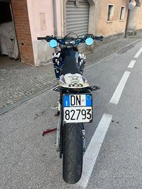 Vendo Husqvarna SM 125 anno 2010. Moto sempre utilizzata per tragitto casa–scuola e qualche uscita in zona. Componenti montati: Scarico completo Scalvini Grafiche personalizzate Manubrio in ergal blu Pompa freno maggiorata con tubi in treccia Specchietti bassi. Cedo anche: Angel eye blu Scarico originale Specchietto originale Set paramani blu Pedane passeggero Tappo benzina con chiave blocca disco. La moto non monta il miscelatore ed ha 32.000 km (da contachilometri) Radiatore leggermente rientrato ma perfettamente funzionante (foto allegata). Prezzo trattabile, per info contattatemi senza problemi.