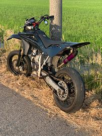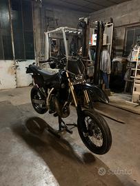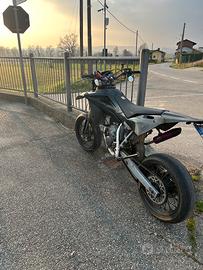 Vendo husqvarna sm 125 monta: cilndro cr 7t mikuni 38 v force 3 biella woosner collettore htm accensione emp tubi cr espansione reparto corse terminale sp impanto semplificato energy system adelin 19x18 plastiche nere v face nera e parafango yz ammortizzatore husqvarna 510 (rifatto) in oltre sono stati sotituiti: selettore marce corona pigone e catena pistone woosner attualemente ha 15 ore cambio olio eseguito regolarmente ogni 30ore è stato cambiato anche il filtro dell’aria insieme cedo anche tutti i pezzi originali compreso di scarico omologato