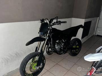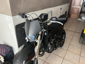 Vendesi Husqvarna sm 125, anno 2009 in buone condizioni. La moto monta espansione calcolata hgs pulita e lucidata, carburatore kehin 38 pwk con collettore maggiorato originale Husqvarna CR. filtro aria in spunga athena nuovo, impianto elettrico luci, batteria, frecce completamente funzionante.. Motore rifatto 1 anno fa e poi usata molto poco. Pistone monofascia woosner. Cilindro originale 7t. tagliando appena eseguito con cambio olio e rifatta pompa raffreddamento da Bosisio Motori. Telaio, forcellone e telaietto verniciati insieme ai cerchi in carrozzeria. Kit plastiche nere. E stato fatto lo spurgo dell olio freno anteriore e posteriore. Moto omologata per 2. Disponibile per visione e prova. Prezzo trattabile.
