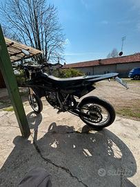 vendo per passaggio a cilindrata superiore husqvarna sm 125 del 2009, motore rifatto completamente duemila chilometri fa ( cuscinetti di banco, paraoli, bielle, albero, cilindro e pistone + revisione cambio e sostituzione dischi frizione) la moto monta inoltre: -gomme bridgeston hypersport montate un anno fa -scarico giannelli completo con terminale short in carbonio -filtro aria in spugna nuovo -collettore aspirazione nuovo -forcelle revisionate con olio 15w per renderle più rigide -pompa freno anteriore nuova -comando frizione nuovo -cavo frizione nuovo -kit carene ufo total black -faretto a led aggiuntivo -freccie a led -stop a led -specchietto a goccia richiudibile -batteria nuova -trasmissione completa nuova -comando aria manuale -portatarga richiudibile in acciaio la moto è perfetta parte sempre al primo colpo, appena tagliandata. disponibile per qualsiasi prova NO PERDI TEMPO. NO OFFERTE ASSURDE. prezzo 4.000, se interessati contattatemi al 3207766106