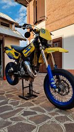vendo husqvarna sm 125 del 2005 con 38.000 km, la moto è perfettamente funzionante, sono stati cambiati i paraoli del albero motore, è stato tolto il contralbero, come carburatore monta un keihin pj 36, espansione dep pipes e terminale artigianale. La moto ha i suoi chilometri ma se carburata bene e se trattata bene ne fa molti altri, Il pistone attualmente a 80 ore. sono stati verniciati cerchi con una pelicola spray in caso si voglia toglierla, è stato anche verniciato il forcellone dietro e il telaietto dietro. ho fatto il cambio con tachimetro digitale, (prima era analogico). L'olio del cambio èe stato appena sostituito. Gomme al 70% dietro e 90% davanti.