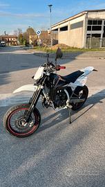 Vendo bellissima Husqvarna sm 125 anno 2012 (ultimo anno di produzione di questo modello) edizione con VALVOLA MECCANICA di serie, non quella del cr montata su sm. Al motore sono stati eseguiti i seguenti lavori: -Rifacitura blocco(circa 100 ore fa) -Ricromatura cilindro(4000km fa) (50 ore) -Cambio pistone(4000km fa) (50 ore) -Sostituito pacco lamellare originale con quello Pasinetti -38 kehin -Radiatori maggiorati gpi -Scarico completo Arrow omologato (rilanato 200km fa) -Termometro koso A livello estetico -Parafango yz 85 -Mascherina Vface -Fianchetti cr bombati - Serbatoio sostituito,poiché rotto, con uno sm post -Manopole domino rosse nuove -Portatarga Dev And Craft -Pedalina accensione piccola (derivazione cr 85) La moto la cedo con pezzi di ricambio originali, un porta telefono utile per i viaggi più lunghi e le pedaline per il biposto(essendo omologata per 2). Moto usata per andare a scuola o giri domenicali. No perditempo o sognatori e prezzo trattabile.