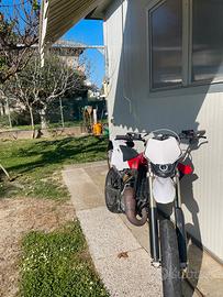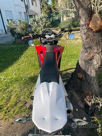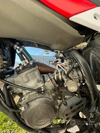 Vendo a malincuore splendido husqvarna sm 125 TARGATA omologata per due con pedane, in perfette condizioni sia meccaniche che estetiche per passaggio all'auto. monta: blocco completo htm racing 125 7t( cilindro con valvola meccanica, pistone, biella ricavata dal pieno, testa e basetta) con all'attivo 20ore espansione htm racing terminale scalvini pacco vforce 4R pwk keihin 38 vface con angel eye e faro led set di plastiche nuove gomme in buono stato (70%) moto sempre trattata da appassionato, sempre tenuta al coperto e fatta scaldare bene prima dell'utilizzo, sempre fatto miscela con motul 800. insieme alla moto cedo anche, un set di plastiche nere completo, tutte i pezzi originali e vari pezzi per la carburazione. prezzo trattabile solo persone interessate.